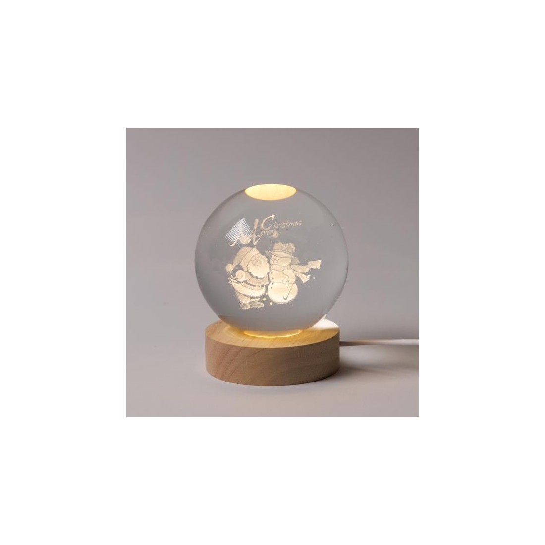 ΦΩΤΙΖΟΜΕΝΗ ΜΠΑΛΑ 8cm, ΧΡΙΣΤΟΥΓΕΝΝΙΑΤΙΚΗ ΣΧΕΔΙΟ, ΧΙΟΝΑΝΘΡΩΠΟΣ ΜΕ ΑΓΙΟ ΒΑΣΙΛΗ, USB, 6 ΘΕΡΜΑ ΛΕΥΚΑ SMD LED, BΑΣΗ 7cm, ΠΡΟΕΚΤΑΣΗ ΠΑΡΟΧΗΣ 70cm, IP20