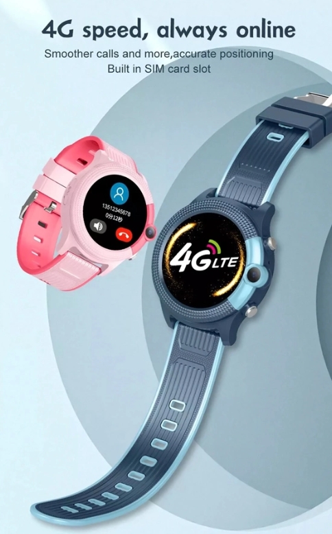 Εξοπλίζεται με έγχρωμη οθόνη αφής 1.28" και κάμερα 0.3 MP. Υποστηρίζει τηλεφωνικές κλήσεις ή βιντεοκλήσεις με δίκτυο 4G και διαθέτει και κουμπί για κλήσεις SOS.
